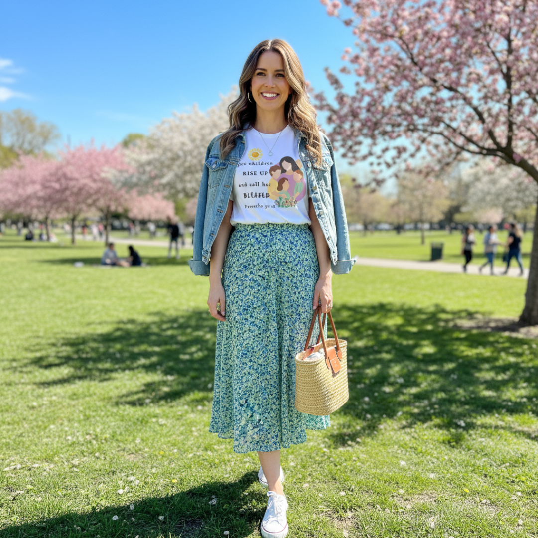 This tee is perfect for everyday wear and such a sweet reminder of my calling as a mom. I love the oversized fit—it’s flattering and cozy.